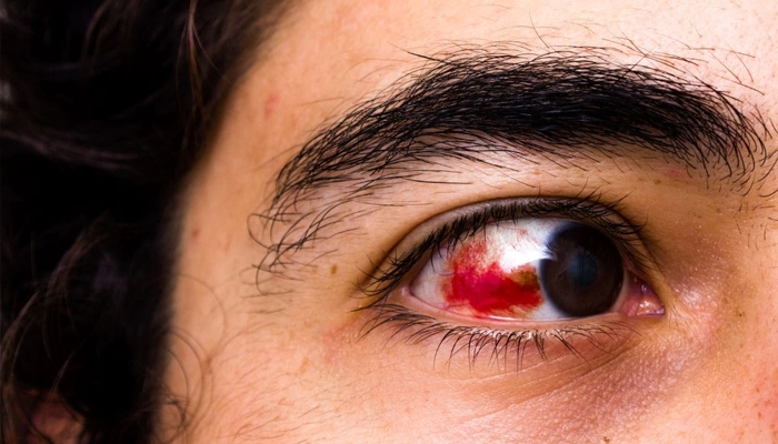Máu tràn ra và đọng lại ở lòng trắng mắt