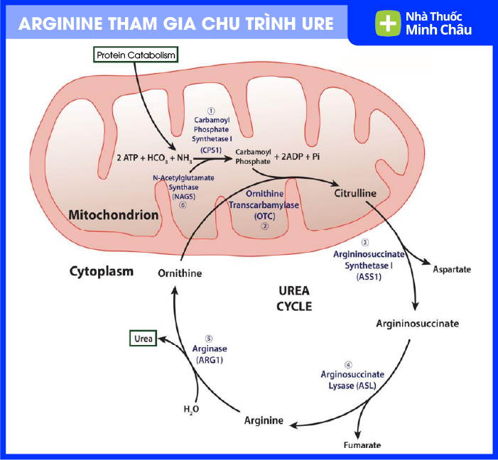 Arginine đóng vai trò quan trọng trong chu trình ure tại gan, giúp chuyển hóa amoniac – một sản phẩm độc của quá trình phân giải protein – thành ure để đào thải qua thận. Nhờ đó, arginine góp phần duy trì cân bằng nitơ trong cơ thể.