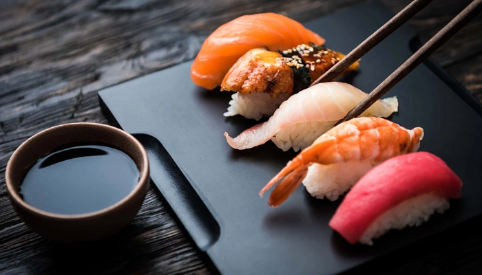 | Sushi / Sashimi | Nhiễm khuẩn, sán | Sushi chín (cơm cuộn tôm chín, bơ, trứng chín) |