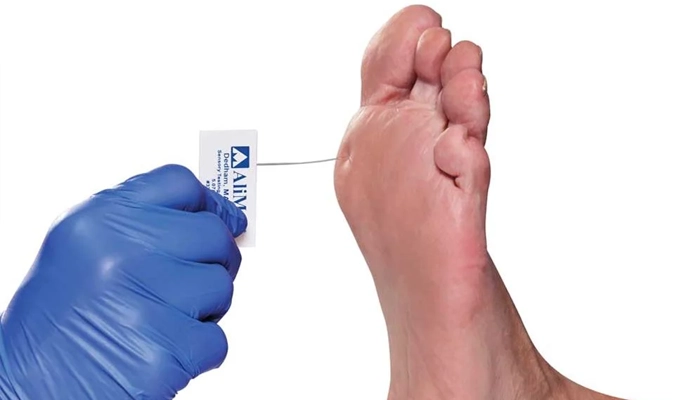 Kiểm tra cảm giác (Test Monofilament): Sử dụng một sợi chỉ nilon mảnh để chạm vào các điểm trên bàn chân xem bệnh nhân có cảm nhận được hay không.