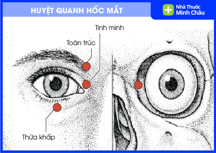 Cách làm: Dùng đầu ngón tay trỏ ấn nhẹ và xoay tròn tại các huyệt quanh hốc mắt (huyệt Tình Minh, Toản Trúc, Thừa Khấp).