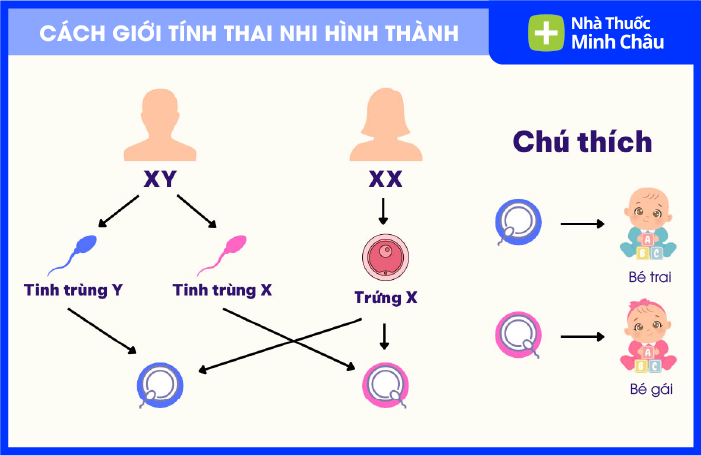 Vì vậy giới tính phụ thuộc vào tinh trùng của người bố, thụ tinh với trứng sẽ quyết định giới tính thai nhi.