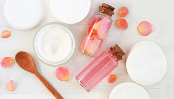 Nước hoa hồng làm dịu, se khít lỗ chân lông.