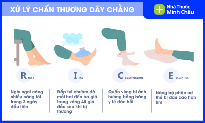 Chườm lạnh (Ice): Giúp giảm sưng, đau trong 48 giờ đầu.