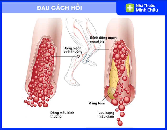 Bệnh động mạch ngoại biên (PAD): Nguyên nhân phổ biến nhất gây đau cách hồi do mạch máu. Các động mạch ở chân bị hẹp bởi mảng xơ vữa.