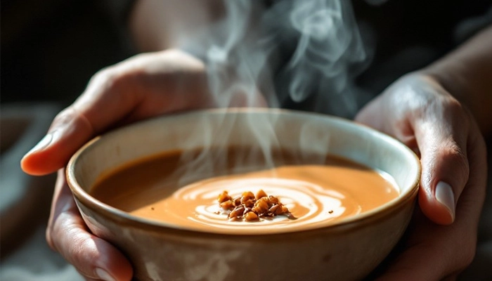 Thức ăn lỏng, ấm giúp bổ sung điện giải và dinh dưỡng mà không gây ma sát làm đau niêm mạc họng đang bị sưng.