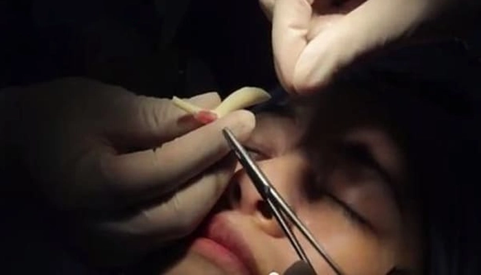 Đây là biến chứng phổ biến nhất ở những người nâng mũi bằng sụn nhân tạo (Silicone) thế hệ cũ. Khi về già, da mũi mỏng đi đáng kể. Sụn nhân tạo vốn cứng và không có độ bám dính sinh học sẽ bắt đầu hiện rõ hình dáng dưới da.