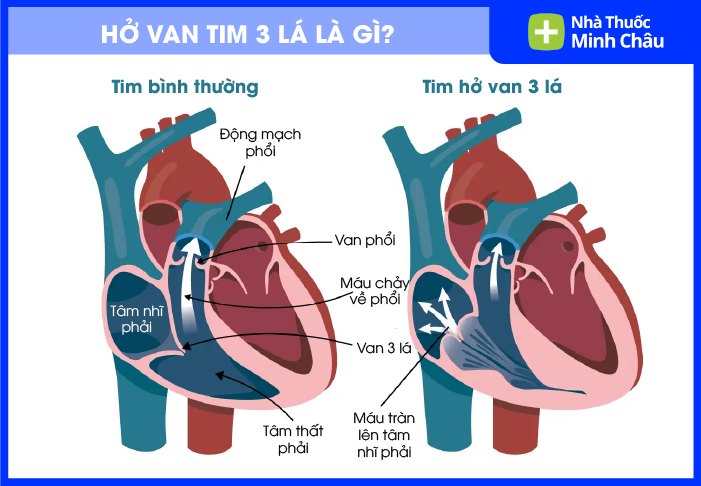 Ở người bình thường, van 3 lá hoạt động như “cửa một chiều”, giúp máu đi từ nhĩ phải xuống thất phải và không quay ngược lại. Khi van bị hở, một phần máu bị rò ngược, làm tăng gánh nặng cho tim phải, dẫn đến giãn buồng tim và giảm khả năng bơm máu về phổi.