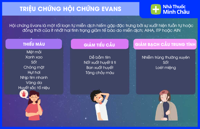 Một số trường hợp còn gặp giảm bạch cầu trung tính do tự miễn, khiến người bệnh dễ nhiễm trùng. Mặc dù hiếm gặp, Evans là một hội chứng mạn tính, dễ tái phát và có thể đe dọa tính mạng nếu không được phát hiện sớm và điều trị đúng cách.