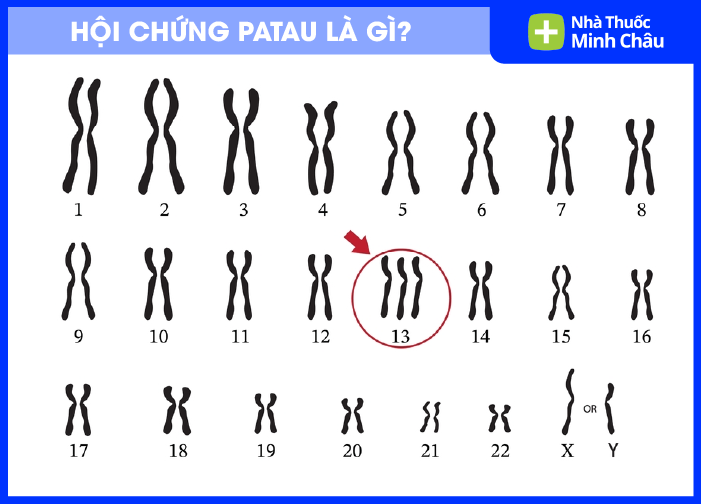 Trẻ mắc Patau có 47 nhiễm sắc thể, trong đó có 3 bản sao của nhiễm sắc thể số 13 thay vì 2 như bình thường.