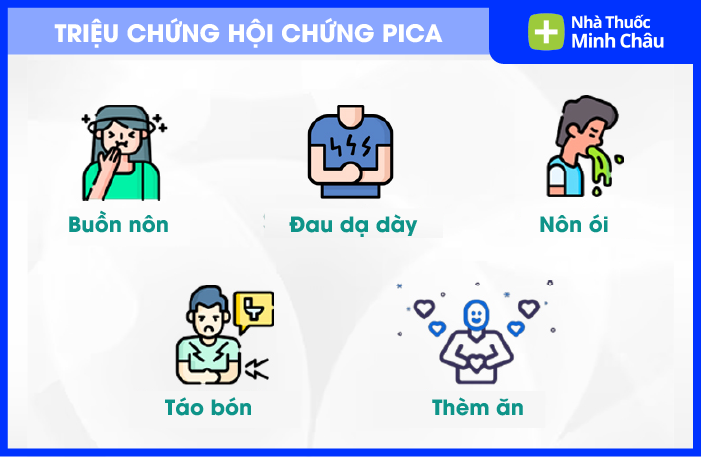 Triệu chứng chính là ăn những thứ không phải thức ăn diễn ra thường xuyên. Tuy nhiên, Pica có thể biểu hiện qua nhiều triệu chứng khác nhau tùy vào loại vật mà bệnh nhân ăn phải.