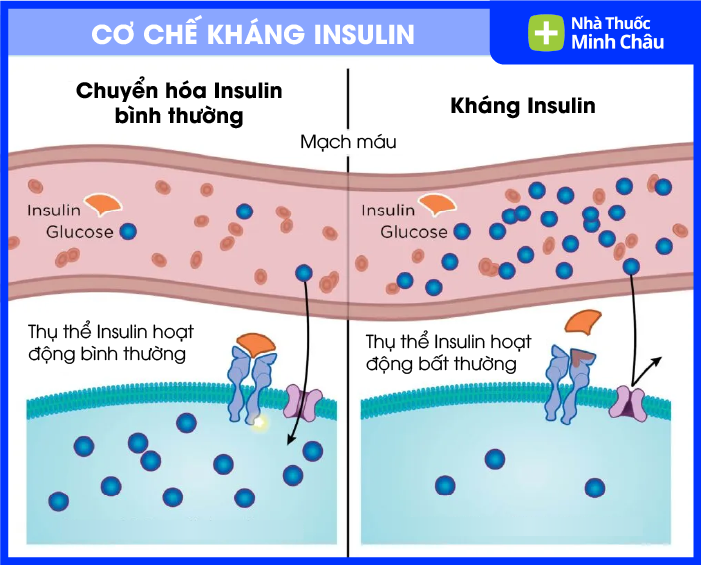 Khi kháng insulin xảy ra, các thụ thể này mất nhạy cảm, khiến tín hiệu truyền đi bị “nghẽn”.