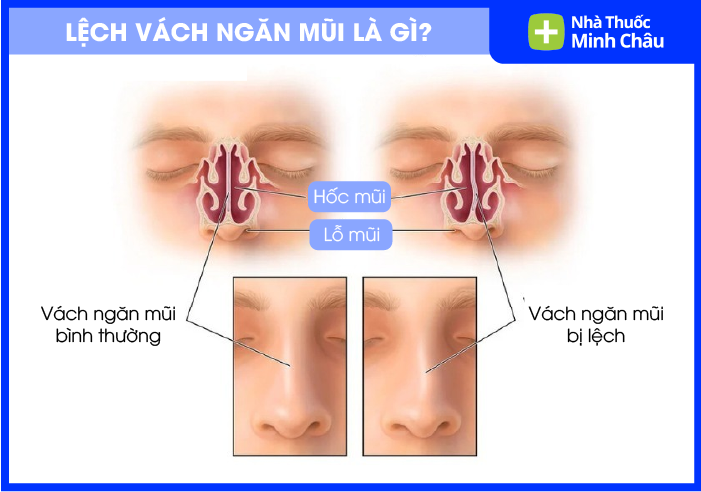 Chảy máu cam thường xuyên: Bề mặt vách ngăn bị lệch thường khô hơn bình thường do luồng không khí xoáy trực tiếp vào, làm nứt nẻ niêm mạc và vỡ các mao mạch nhỏ.