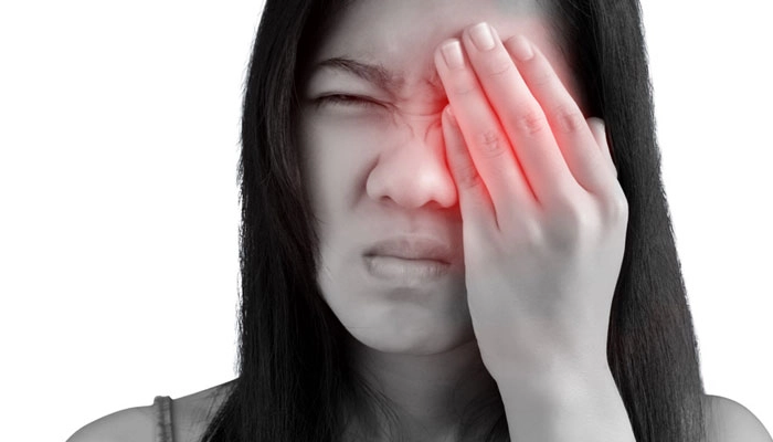 Đau nhức hốc mắt: Cảm giác đau âm ỉ hoặc dữ dội xuất hiện phía sau nhãn cầu.
