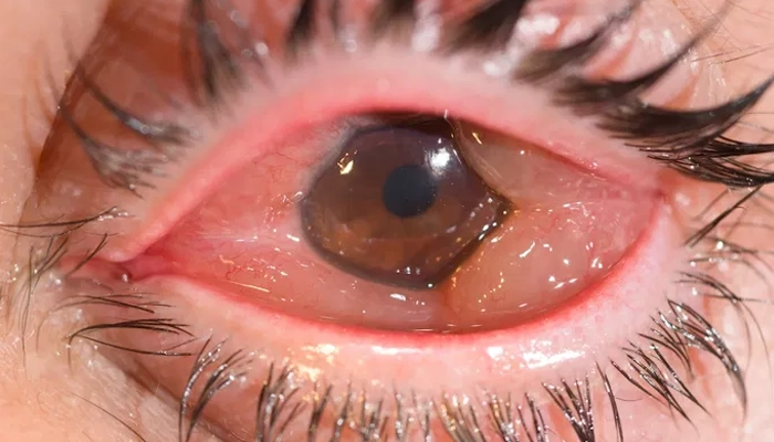 Hiện tượng phù kết mạc khiến lòng trắng của mắt bị phồng rộp