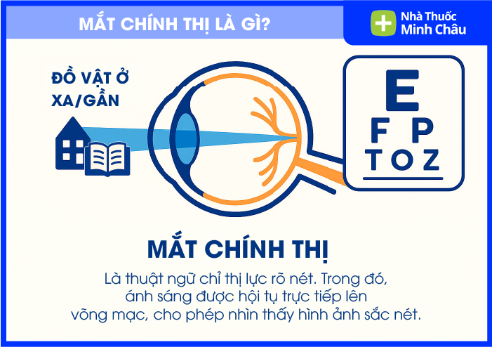 Mắt chính thị là mắt không có tật khúc xạ, ánh sáng hội tụ đúng trên võng mạc; cận, viễn và loạn thị là các tình trạng hội tụ sai gây nhìn mờ và cần chỉnh kính.