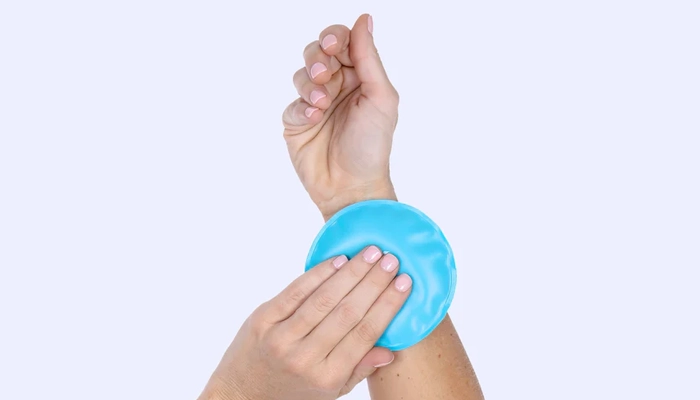 Cách làm: Dùng túi chườm ấm hoặc khăn thấm nước ấm (khoảng 40°C) đắp lên cổ tay trong 15-20 phút, thực hiện 3-4 lần mỗi ngày.