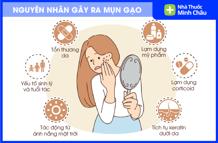 Mụn gạo có thể hình thành từ nhiều yếu tố khác nhau. Các nguyên nhân phổ biến bao gồm:
