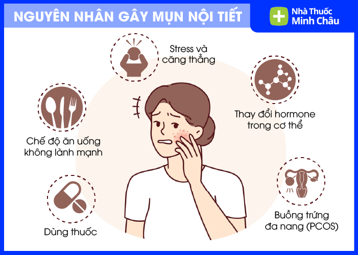 Có nhiều yếu tố khiến nội tiết mất cân bằng, từ đó gây mụn. Một số nguyên nhân phổ biến gồm: