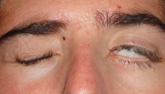 Liệt hoặc yếu cơ vòng mi: Đây là cơ có nhiệm vụ đóng mí mắt. Khi dây thần kinh số VII (điều khiển cơ này) bị tổn thương do liệt Bell, tai biến hoặc nhiễm virus, mí mắt sẽ không thể khép kín.