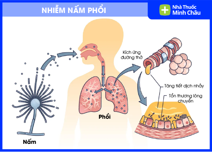 Tổn thương cấu trúc phổi sẵn có tạo môi trường lý tưởng cho nấm phát triển:
