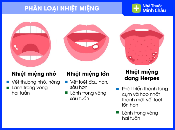 Tùy mức độ lan rộng và kích thước, nhiệt miệng được chia thành 3 dạng: