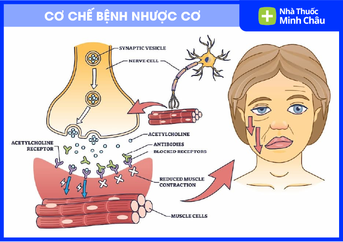 Trong bệnh nhược cơ, hệ thống miễn dịch vốn có chức năng bảo vệ cơ thể lại sản sinh ra các kháng thể bất thường. Các kháng thể này tấn công, ngăn chặn hoặc phá hủy các thụ thể acetylcholine tại khớp nối thần kinh - cơ. Khi số lượng "ổ khóa" (thụ thể) bị giảm đi, các tín hiệu thần kinh không thể kích hoạt cơ bắp một cách đầy đủ. Kết quả là cơ bắp trở nên yếu đi nhanh chóng khi phải hoạt động liên tục. Đây là một bệnh lý mãn tính, có nghĩa là người bệnh sẽ chung sống với nó lâu dài, nhưng với y học hiện đại, các triệu chứng hoàn toàn có thể được kiểm soát ở mức ổn định.