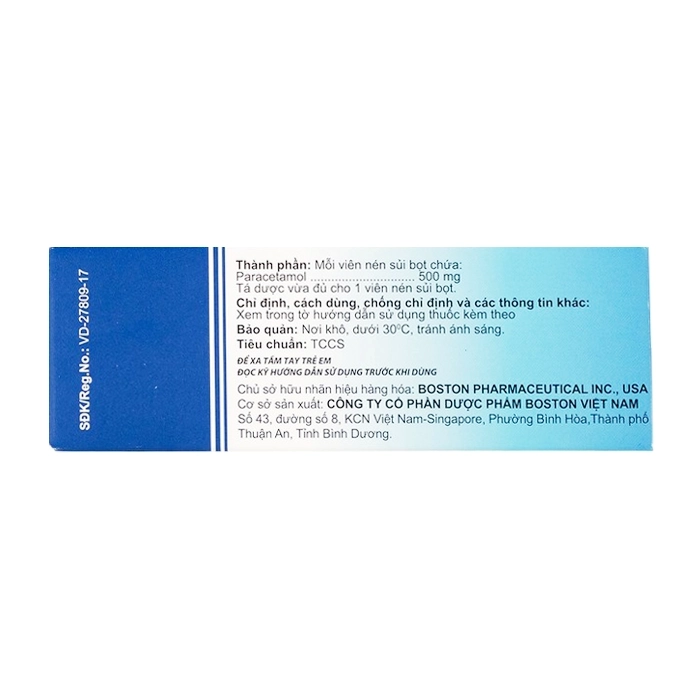Paralmax 500mg Boston 5 vỉ x 4 viên - Sủi giảm đau, hạ sốt