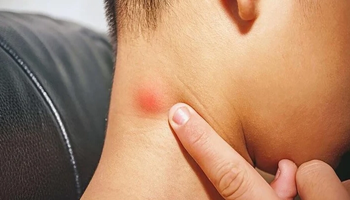 Phát ban ở ngực có thể đi kèm với tình trạng nổi hạch ở cổ do nhiễm trùng.