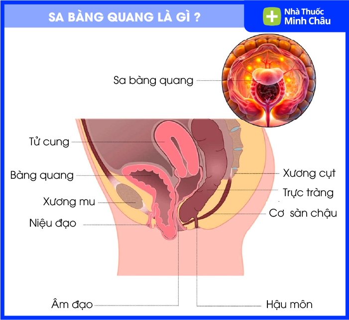 Về mặt giải phẫu, bàng quang được nâng đỡ và cố định bởi hệ thống cơ và mô liên kết của sàn chậu. Khi “khung nâng đỡ” này suy yếu, giãn hoặc bị tổn thương, bàng quang có xu hướng tụt xuống khỏi vị trí ban đầu và chèn vào thành trước âm đạo. Không chỉ ảnh hưởng đến thẩm mỹ vùng kín, tình trạng này còn tác động trực tiếp đến chức năng tiểu tiện.