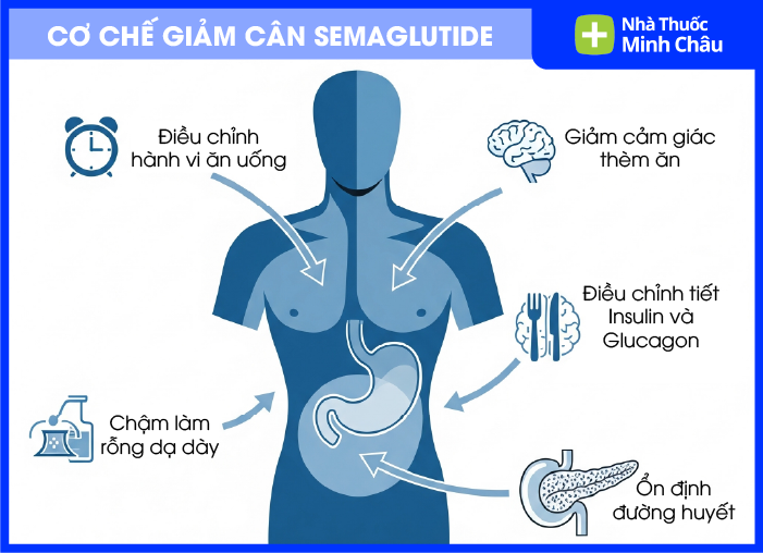 Semaglutide giúp giảm cân thông qua 4 cơ chế chính: