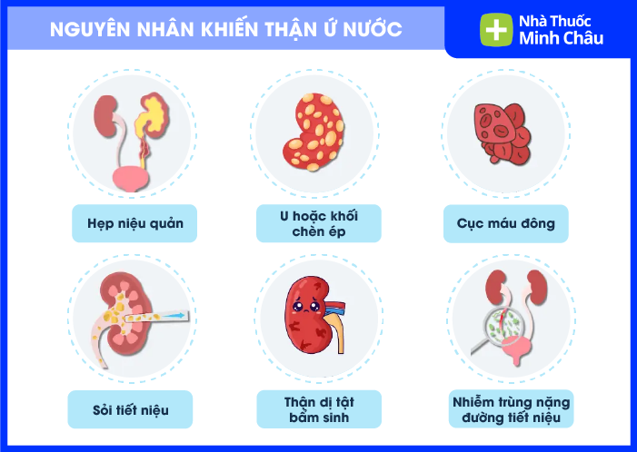 Có rất nhiều nguyên nhân gây thận ứ nước, có thể chia thành tắc nghẽn cơ học, trào ngược và yếu tố chức năng.