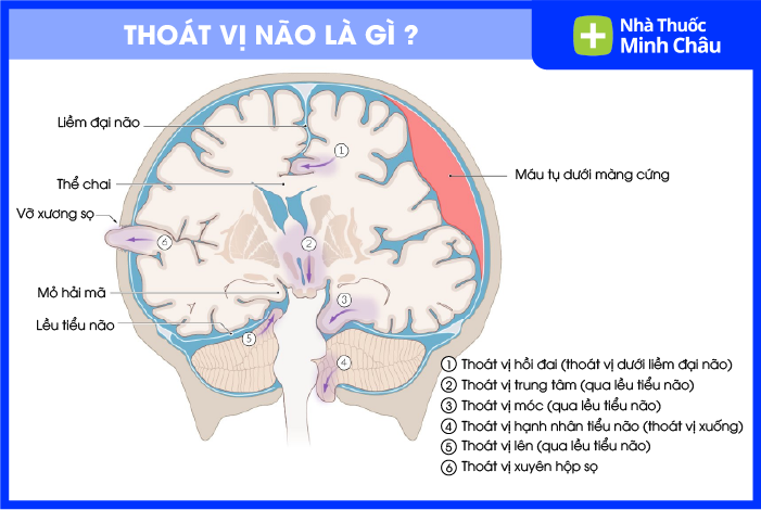 Thoát vị não là tình trạng nhu mô não, dịch não tủy và mạch máu bị đẩy lệch khỏi vị trí bình thường thông qua các khe hở tự nhiên hoặc nhân tạo trong hộp sọ. Hiện tượng này xảy ra khi áp lực nội sọ tăng quá cao, vượt quá khả năng bù trừ của cơ thể.