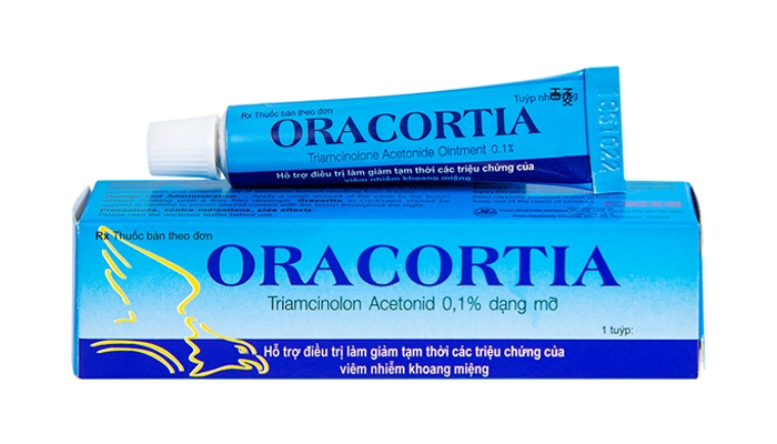 Thành phần chính thường là Triamcinolone acetonide, giúp ức chế phản ứng viêm và hỗ trợ lành nhanh vết loét.