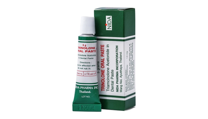 Gel chứa Triamcinolone acetonide giúp giảm đau rát và làm dịu tổn thương niêm mạc miệng.