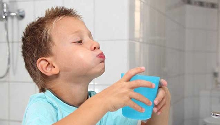 Vệ sinh miệng cho trẻ sau mỗi bữa ăn bằng nước muối sinh lý hoặc nước lọc sạch, nhẹ nhàng.