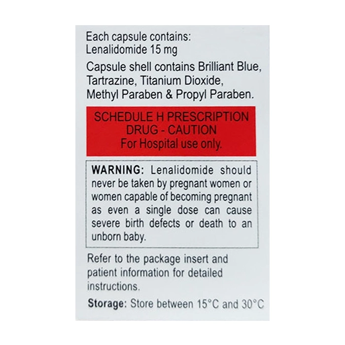 - Nuốt viên nang lenalidomide với nhiều nước, không bẻ vỡ, nhai.