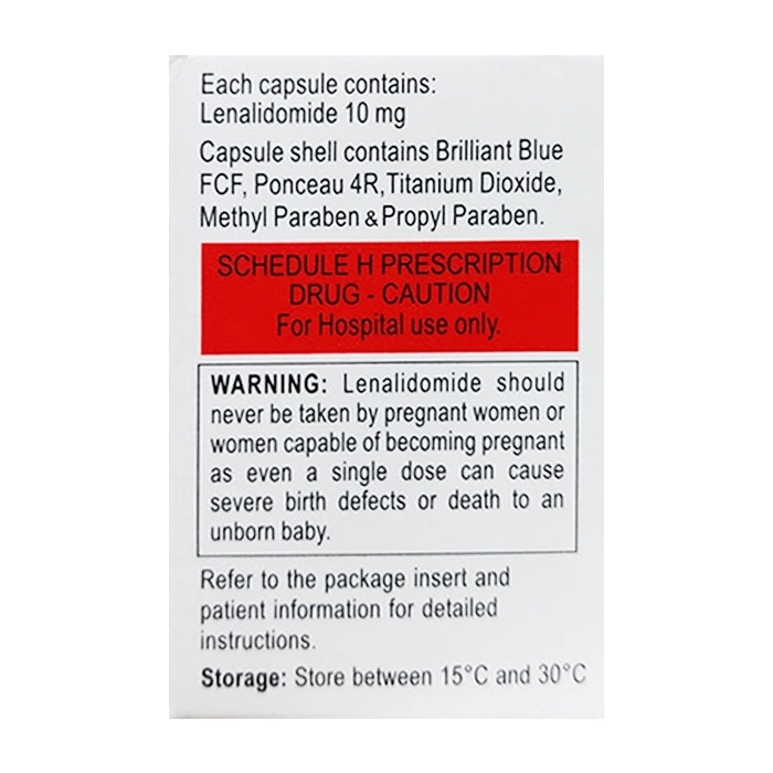 - Nuốt viên nang lenalidomide với nhiều nước, không bẻ vỡ, nhai.
