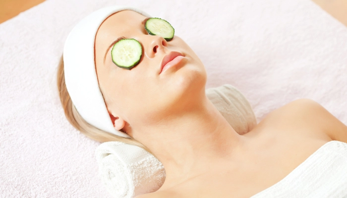 Dưa leo chứa nhiều vitamin C, silica và nước, giúp cấp ẩm, làm dịu vùng mắt và giảm thâm quầng nhanh chóng. Cảm giác mát lạnh còn giúp giảm bọng mắt, mang lại đôi mắt sáng hơn sau vài lần áp dụng.