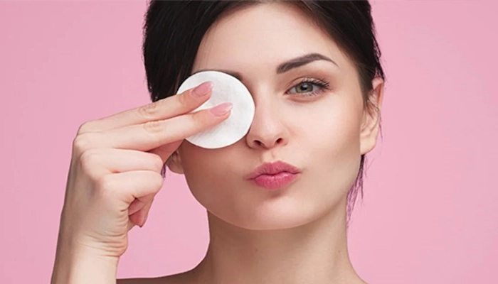 Ngâm bông tẩy trang trong nước hoa hồng lạnh.