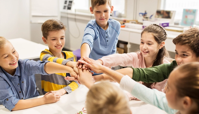 Trường học giúp trẻ làm quen với nếp sinh hoạt tập thể, tự quản lý bản thân, và dần học cách xử lý các tình huống xã hội thực tế.