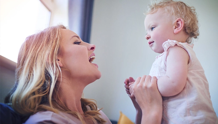Khuyến khích trẻ bắt chước âm thanh: chơi các trò “a, ê, ba, ma” đơn giản.