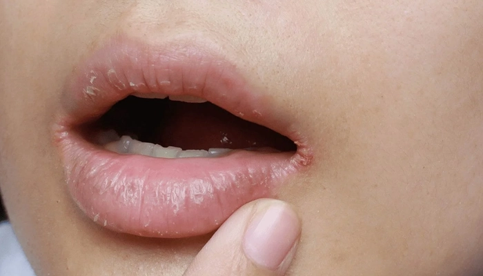 Hình ảnh nứt khẽ mép, dấu hiệu đi kèm của nhiễm nấm Candida