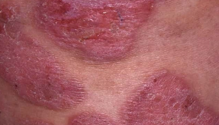 Đặc điểm: Bề mặt mảng da có thể thô ráp hoặc rỉ dịch nhẹ.