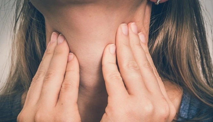 Sờ thấy khối u hoặc hạch bất thường ở vùng trước cổ.