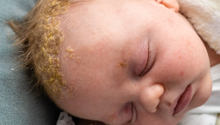Ở trẻ sơ sinh: Thường được gọi là "cứt trâu" (cradle cap).