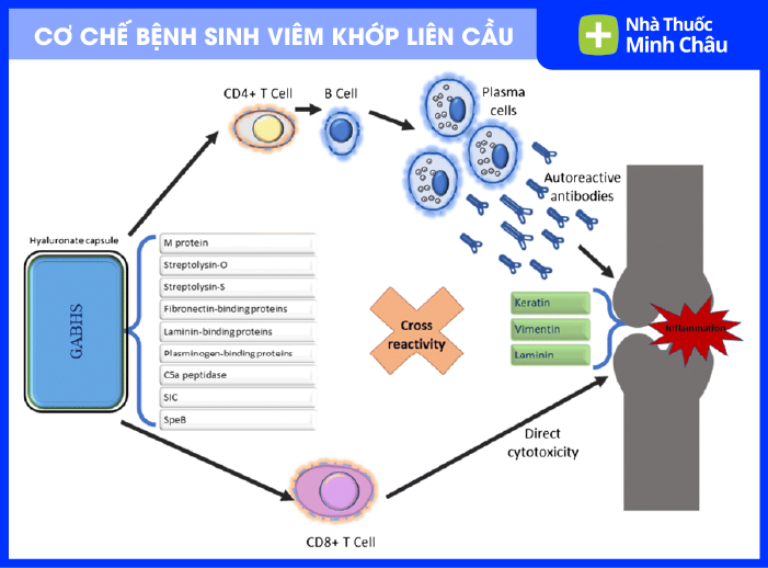 Khi vi khuẩn liên cầu xâm nhập vào khớp, chúng kích hoạt phản ứng viêm mạnh mẽ, gây: