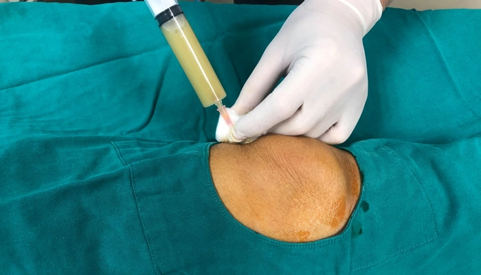 Hình ảnh chọc hút dịch khớp để gửi đi cấy tìm vi khuẩn.