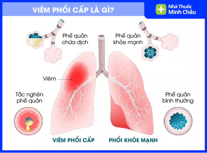 Viêm phổi cấp là tình trạng nhiễm trùng cấp tính tại nhu mô phổi. Tình trạng này khiến các túi khí nhỏ trong phổi (phế nang) bị tổn thương, chứa đầy dịch viêm, mủ hoặc chất lỏng khác thay vì không khí. Điều này gây giảm trầm trọng khả năng trao đổi oxy, dẫn đến khó thở và thiếu oxy máu.