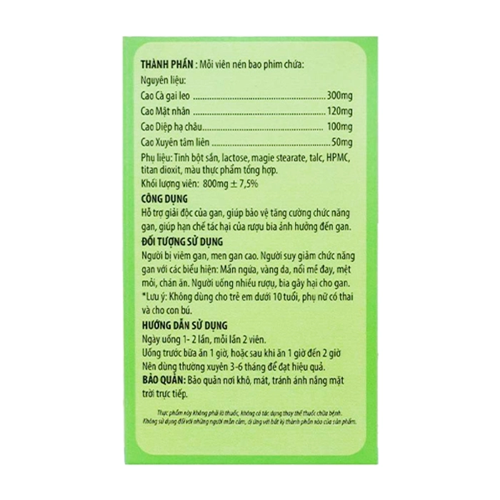 - Hỗ trợ giải độc của gan, giúp bảo vệ tăng cường chức năng gan, giúp hạn chế tác hại của rượu bia ảnh hưởng đến gan.